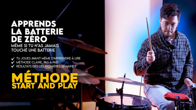 Et si tu veux suivre un parcours complet pas à pas, tu peux aussi découvrir ma méthode Start and Play, pensée pour les batteurs débutants qui veulent enfin progresser sans se sentir perdus. (clique sur l’image pour y accéder)